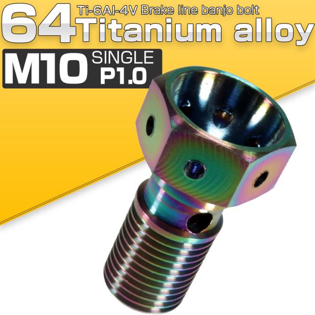 バンジョーボルト M10 P1.00 チタン シングル 1本ホース用 スズキ車に 虹色 焼きチタン風 JA211