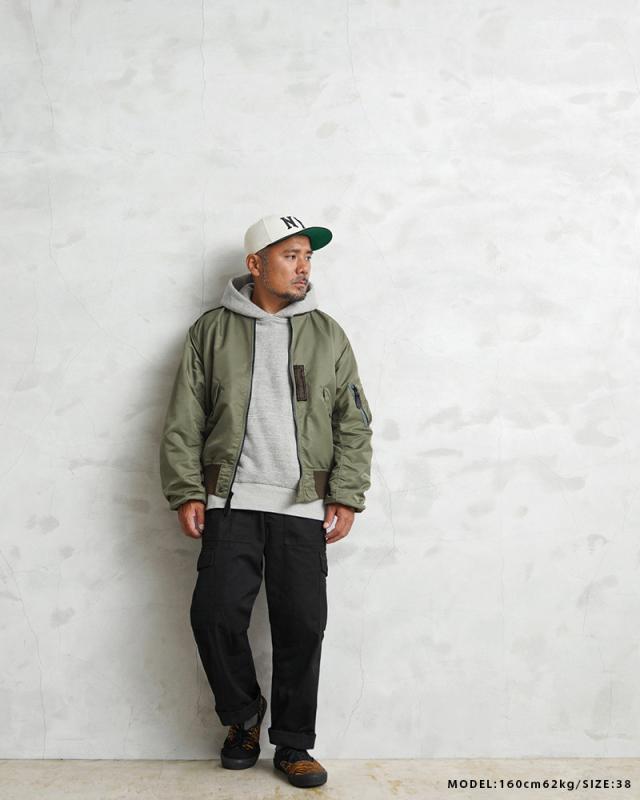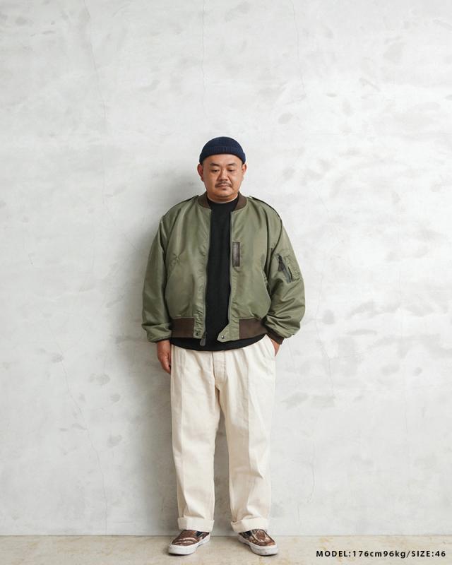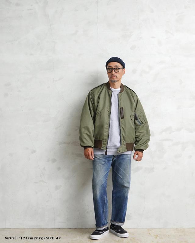 | 商品説明 | 米軍 L-2 フライトジャケット MIL-J-5391モデル OD WAIPER.inc のご紹介です。 品番:WP19 品名:JACKET、FLYING、MAN’S、LIGHTZONE TYPE L-2 1945年にA-2の後継として登場したL-2は、ライト・ゾーン(10℃〜30℃)と呼ばれる温度域での着用が想定された軽量なフライトジャケット。MA-1など一般的なフライトジャケットは防寒用の中綿が詰まっているのに対し、ゴワつきの無いスッキリとしたシルエットが特徴です。1978年に新たに採用されたCWU-36/Pの登場まで、幾度もマイナーチェンジを重ねた息の長いジャケットです。 始めてナイロンが採用されたフライトジャケットであるB-15Bと同時期に誕生したL-2は、当時としては非常に革新的なフライトジャケットでした。また、現在ではナイロンのテープに刷新された酸素マスク固定用タブ(オキシジェンホースタブ)は40年代ではまだ革製となっており、ナイロンと天然皮革の組み合わせが非常にプリミティブな印象を与えます。 襟や袖口、裾には当時のフライトジャケットにみられるオリーブのボディに色差のあるリブを配置。また、ポケットのフラップや肩のエポレット、裾の三角フラップなど、フライトジャケットとして混同されがちなMA-1とのディテールの違いもしっかりと再現しています。 しっとりとしたナイロンの質感だけでなく、サイズ感も実物をしっかり分析し、アームホールの立体的な構造までこだわりぬいて作り上げました。着用した際に生地のドレープが綺麗に見えるシルエットにも非常にこだわりぬいた逸品となっております。 | |||||||||||||||||||||||||||||||||||