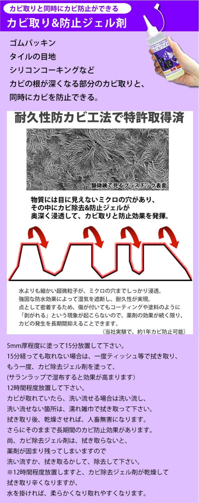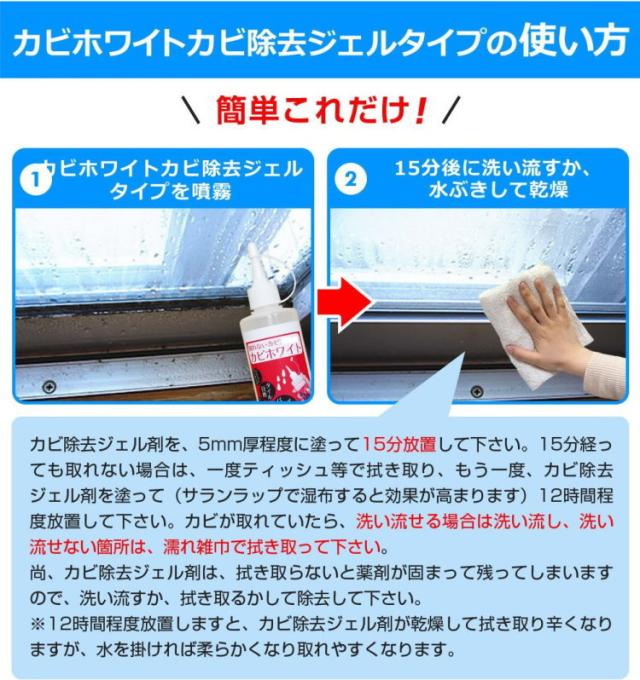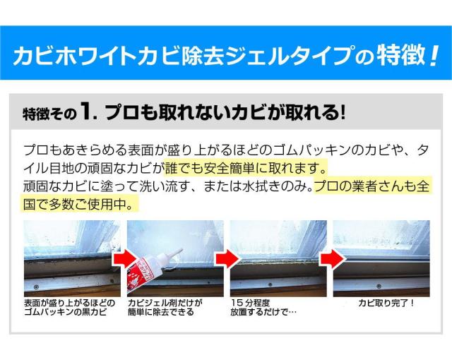 【カビ取り&防止ジェル剤】カビホワイト カビ取りOK ゴムパッキン・タイル目地のカビ取りと長期間カビ防止ができる(03kabi)