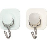 【特長】●化粧合板やコンクリート等に、手軽に取り付けられる粘着テープ付です。●フック部が前後左右に回転するので天井などにも取り付けられます。