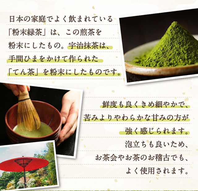 | 宇治抹茶(京都) | 碾茶 | 京都 京丹後産 |