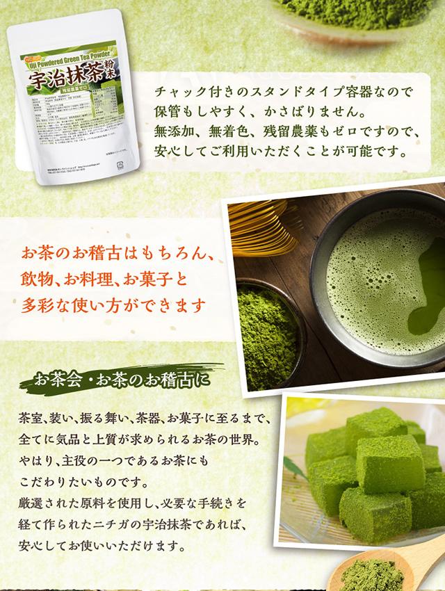 宇治抹茶粉末 残留農薬ゼロ 100g食物繊維豊富 京都京丹後 着色料無添加 香料不使用 酸化防止剤不使用 [02] NICHIGA(ニチガ)