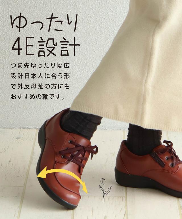 ※こちらの商品は【コンフォートシューズとしてゆったり幅広(EEEE)な大きさ】です。 女性スタッフSATOMI(身長154cm・少し甲高)普段のサイズは、パンプス 23.0-23.5cm / 日本製スニーカー 23.5cm です。