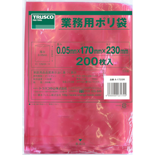 【送料無料!TRUSCO工具 激安特価(トラスコ中山)】TRUSCO 小型ポリ袋 縦230X横170Xt0.05 200枚入 赤 A1723R [