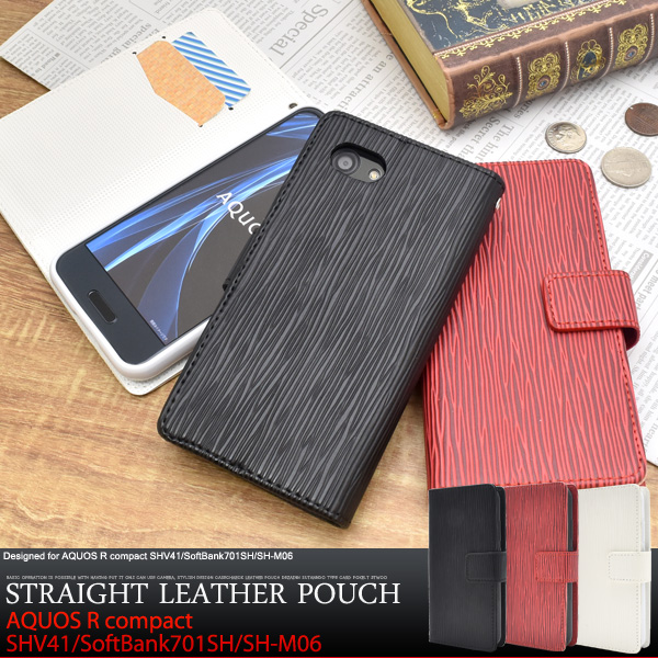 手帳型 AQUOS R compact SHV41 SoftBank701SH SH-M06用 ストレートレザーデザインケース 保護カバー スマホケース シンプル クール
