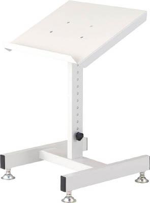 ●高さ調節と天板傾斜機能により座り作業から立ち作業まで対応可能な作業補助台です。組立式、有段式高さ調節、天板傾斜機能、アジャスター付スタンド