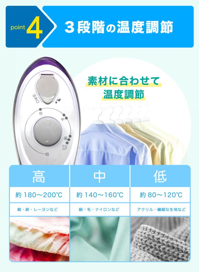 かけ面温度:高:190℃、中:150℃、低:100℃