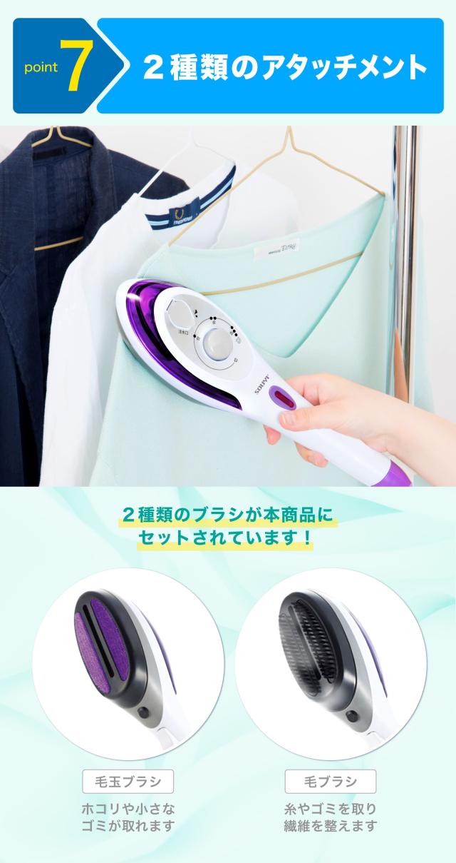 ■ブラシと衣類ブラシの2種類のアタッチメントが付属。 衣類に付着したゴミやホコリを取り除くのに便利