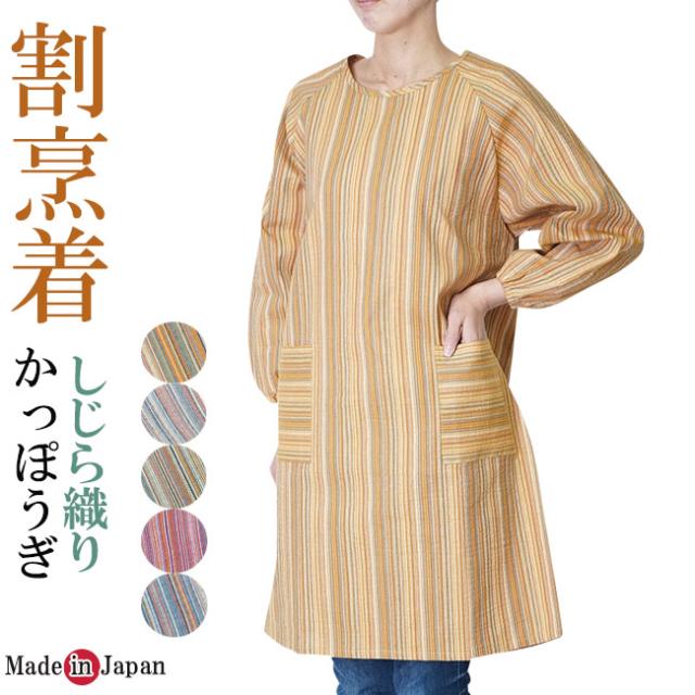 割烹着 しじら織りロング割烹着 かっぽう着/エプロン 1242 日本製 母の日 まだ間に合う 母の日_fk
