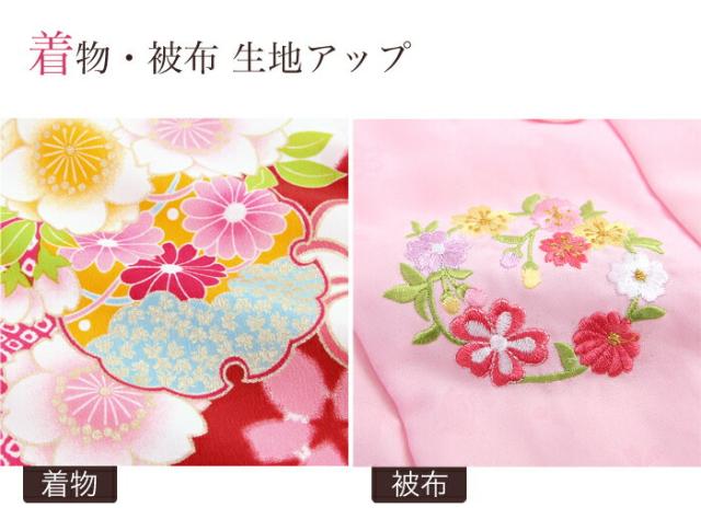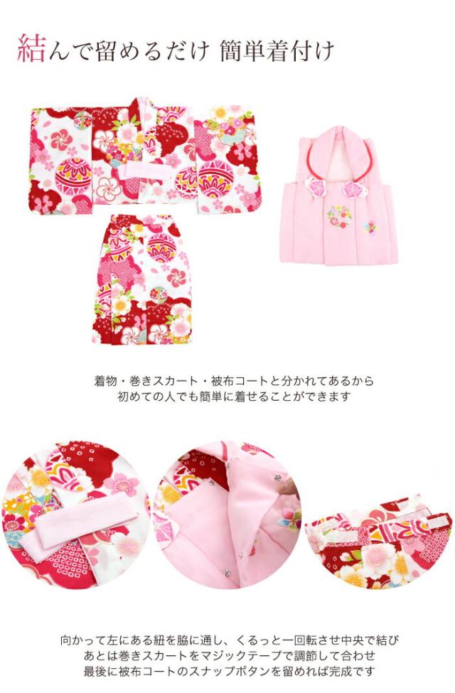 白・赤・ピンクと女の子が大好きな色が詰まった着物。