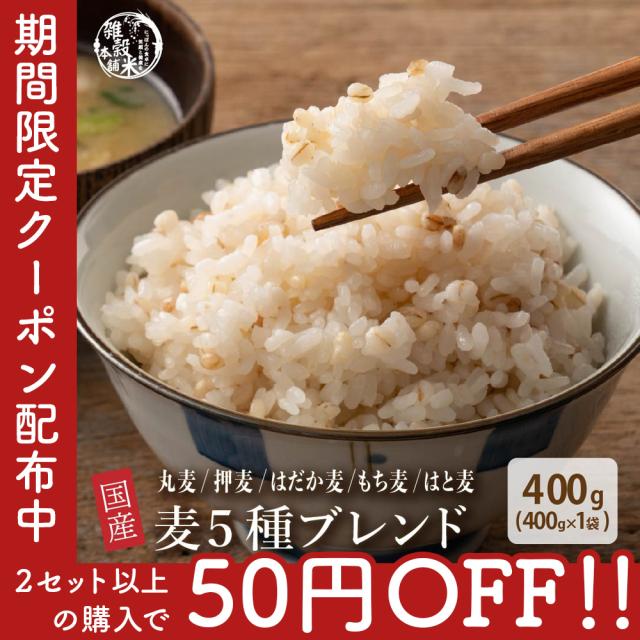 \ セール / 2セット以上ご購入でお値引きクーポン有り!雑穀 雑穀米 国産 麦5種ブレンド 400g [丸麦/押麦/はだか麦/もち麦/はと麦] 無添加 無着色 送料無料 ダイエット食品 置き換えダイエット