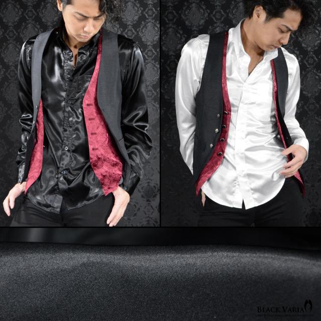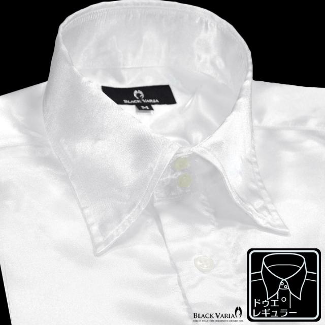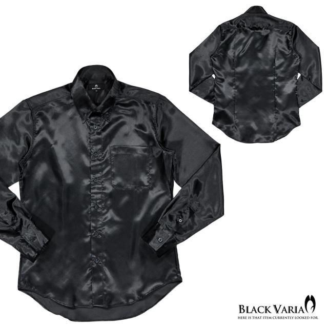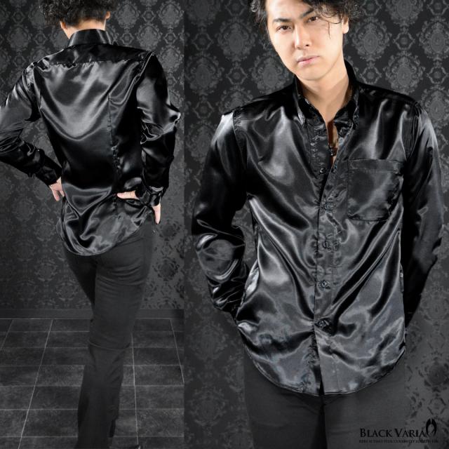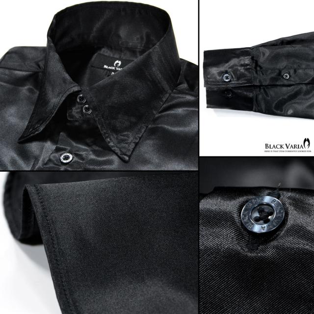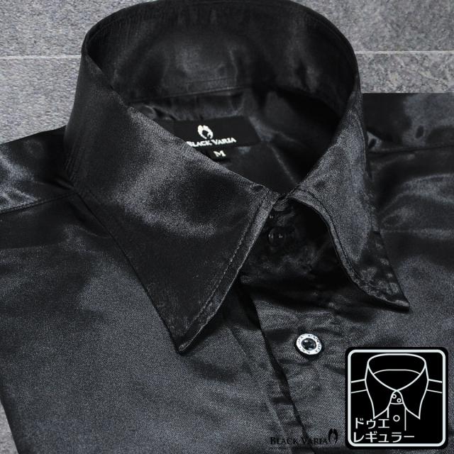 サテンシャツ ドレスシャツ 長袖 レギュラーカラー ドゥエボットーニ 光沢 無地 衣装 日本製 パーティー(ブラック黒) 171714