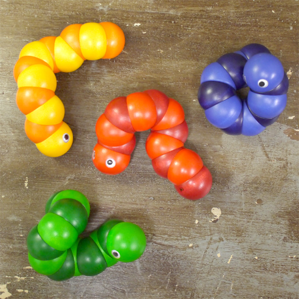 各パーツには45°の角度がついていますのでクルクルとひねることで、クネクネと形が変形します。赤ちゃんの手遊びのおもちゃに最適です。