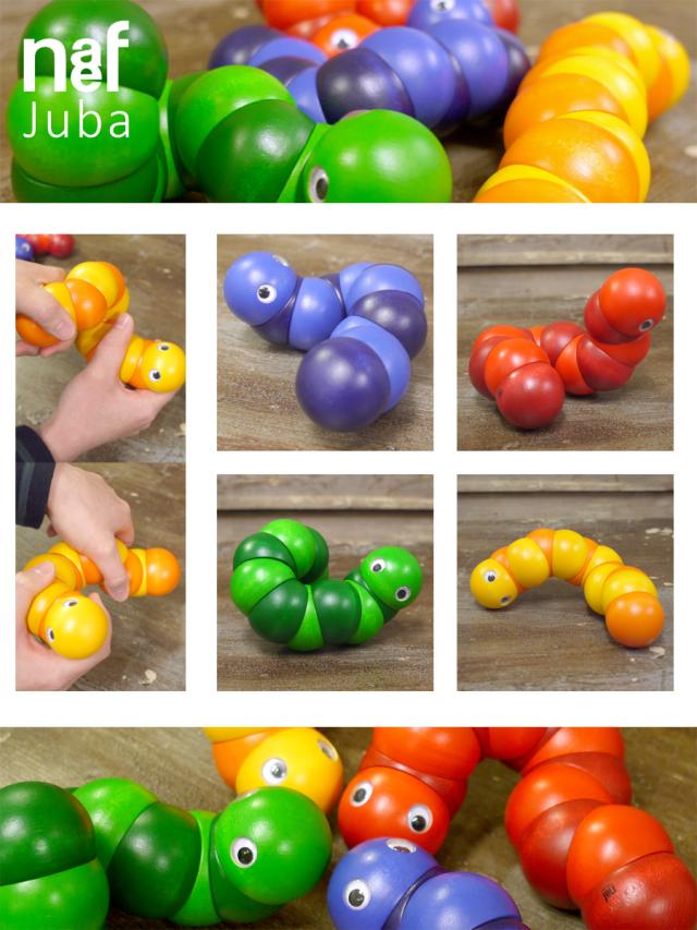 | スイス・Naef(ネフ社)の握りやすくクネクネと形が変形するユーモラスなイモムシ「ジュバ」くんです。 |