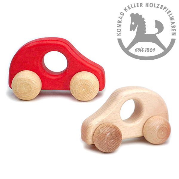 | ドイツのおもちゃメーカーKonrad Keller(ケラー社)のシンプルで美しいブナ材でできた木の車です。 赤ちゃんの手遊びのおもちゃにピッタリな小さなサイズの木製ミニカーです。 |