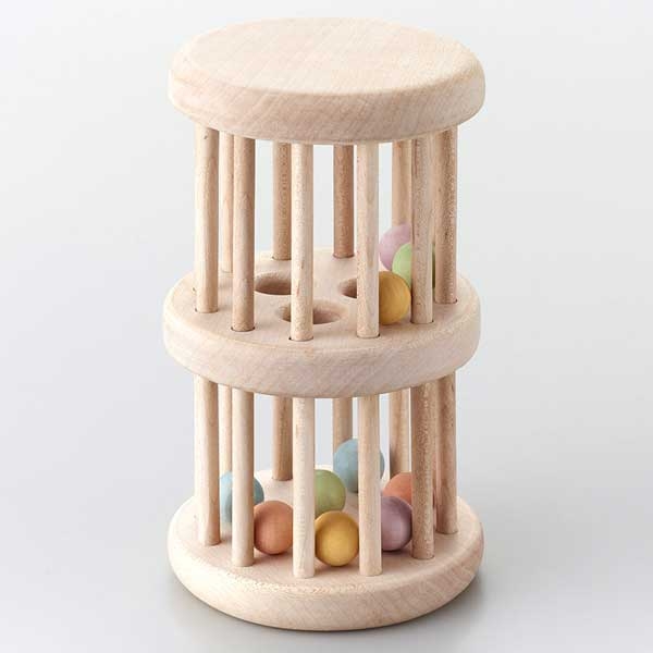 [出産祝いやお誕生日のギフトにぴったりな、人気の木のおもちゃ、名入れセット] Ed.inter(エドインター)の国産木材を日本製の木製玩具「NIHONシリーズ」の木製ラトル(ガラガラ)です。タワー型のラトルは、横にしてころころ転がすと、10個の木球の心地よい音が響きます。 縦にして上下を返すとパラパラと落ちる球の動きを楽しめます。上質な日本の木製玩具の木のあたたかみを楽しんで下さい♪出産祝いなどの贈り物にもオススメです。■NIHONシリーズ こころゆかた、にほんがすき。洗練された形・味わい深い色彩・上質な材料。木製玩具の良さ・価値を唯一無二の「ジャパンブランド」として新たに発信していきます。■NIHONシリーズの4つの特徴○日本の木材を使って作っています。永く使用するのに適した国産木材を選びました。硬く粘りがある性質を持ち、傷つきにくく割れにくいイタヤカエデ(板屋楓)を使用しています。○日本製の塗料を使って着色しました。地球の恵みから生まれた自然素材の国産の塗料を使用しました。温かみのあるやわらかな色彩が特徴で、お子さまが舐めても口に入れても安心です。○永く使えるデザインで、知育玩具としても効果的です。お子さまにとって、手で掴み