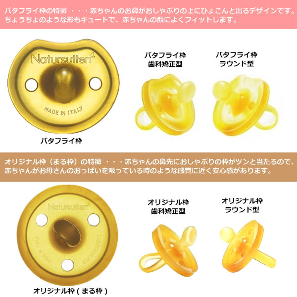 [メール便可] Natursutten ナチュアスッテン おしゃぶり バタフライ枠 歯科矯正型おしゃぶり 天然ゴム ベビー 赤ちゃん ラテックス