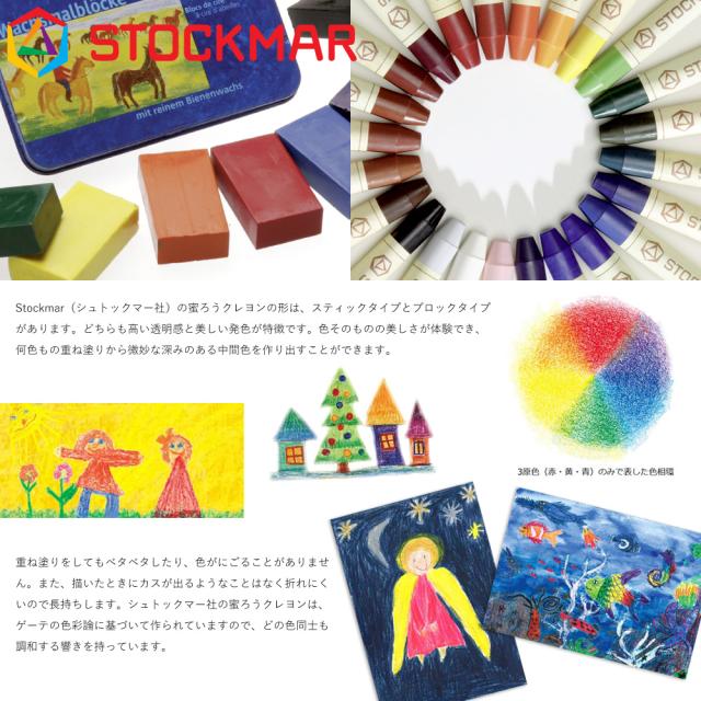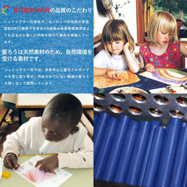 | ドイツ、Stockmar(シュトックマー社)の高い透明感と美しい発色を持つ安全性の高い自然素材の蜜蝋クレヨンです。 |