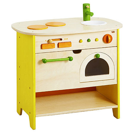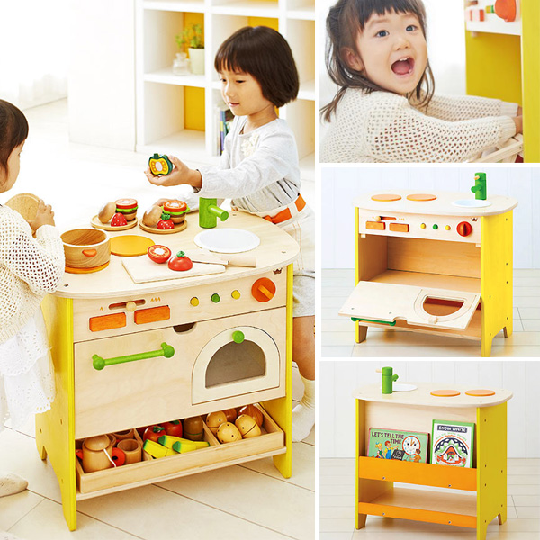 キッチンを挟んで、対面でお話しながら楽しくおままごと! インテリアを邪魔せずリビングに合う木製のスタイリッシュなおままごとキッチン♪