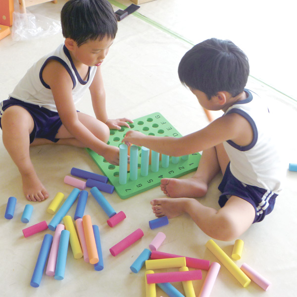 持ちやすくてソフトなペグさし訓練用品です。ペグは7段階の高さ違い、7色のカラーがあります。