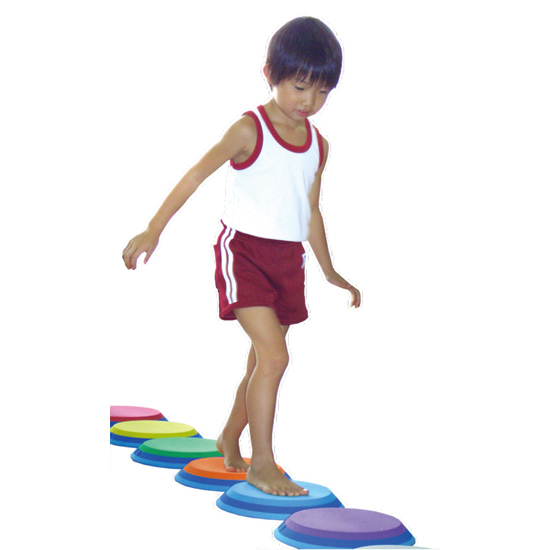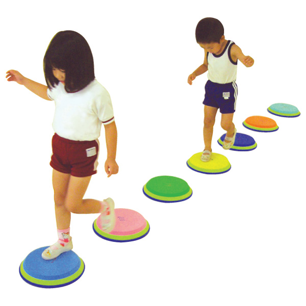 ドレミでピョンピョンは、音プレートを並べて上を飛び石のように渡って音を鳴らします。空気圧によって音が鳴っています。