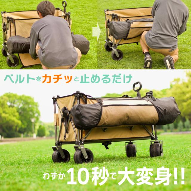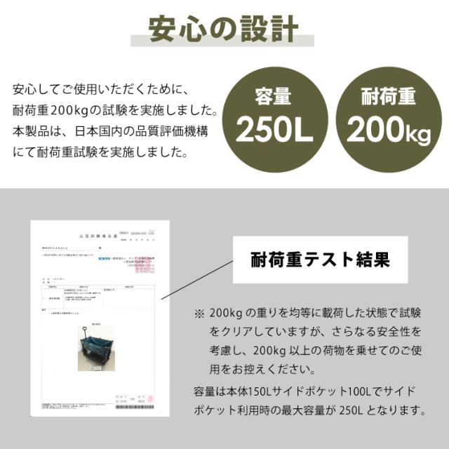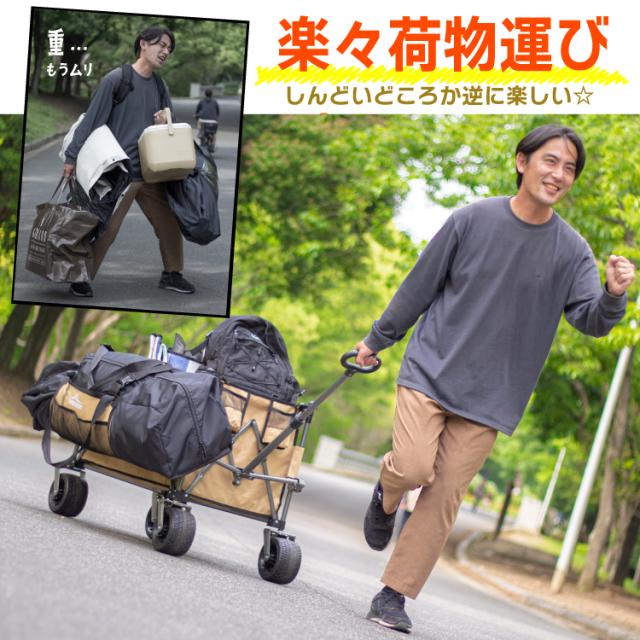 アウトドアワゴン ストッパー付 キャリーカート キャリーワゴン 耐荷重200kg 折りたたみ 大型タイヤ 大容量 250L 4輪