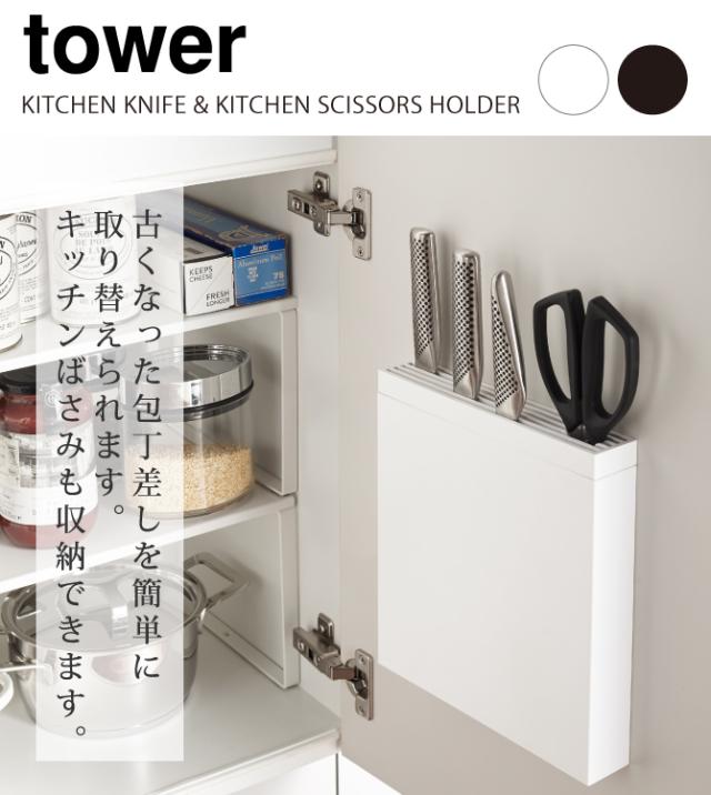 包丁 ホルダー 扉 収納 包丁ホルダー 包丁スタンド 包丁立て シンク下 タワー キッチン 山崎実業 包丁&キッチンばさみ差し TOWER タワー