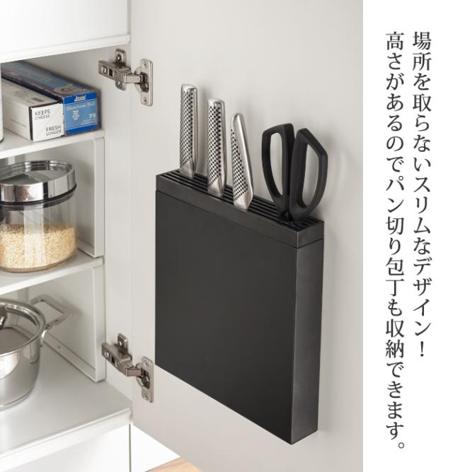 包丁やキッチンばさみをシンク扉に一括収納できます!場所を取らないスリムなデザイン。