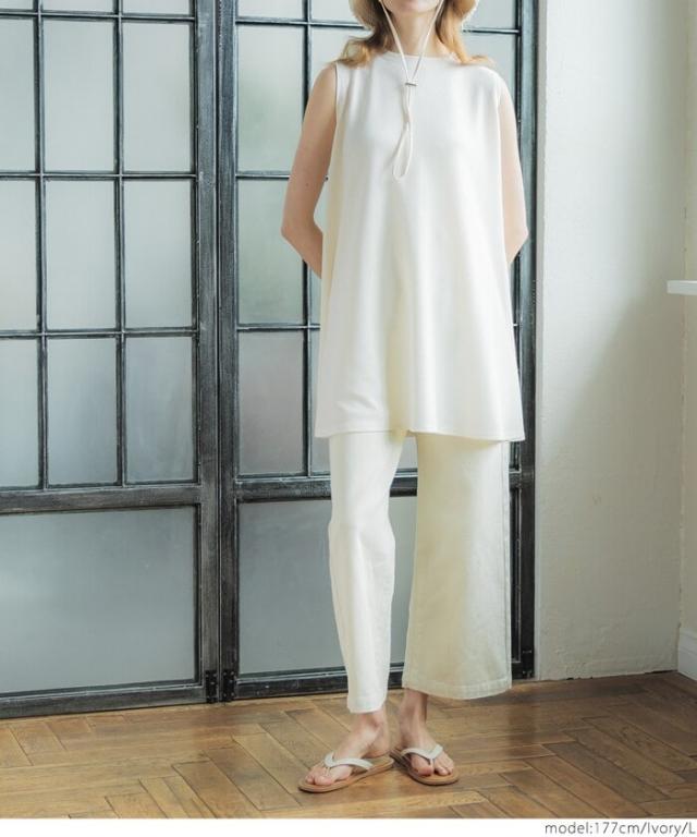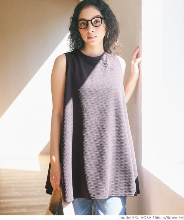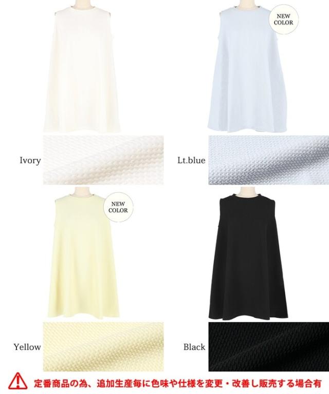 【新色登場】エンボス加工 ノースリーブ Aライン チュニック 全6色
