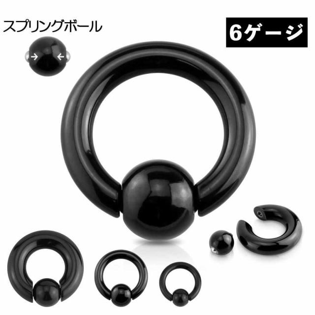 バネタイプ [ 6G ] ブラックスプリングビーズリング 6ゲージ 黒色 バネ式のボールだから取り外し簡単 ボディピアス サージカルステンレス316L 定番 メンズ レディース リング型 プレーン シンプル 内径サイズ 大きい 小さい キャプティブビーズリング 初心者でも安心