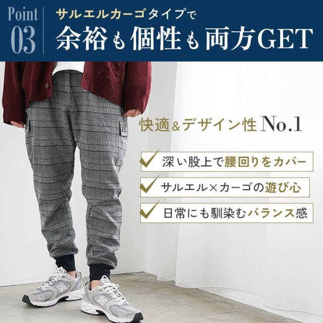 従来の、カジュアルな雰囲気を演出する「カーゴパンツタイプ」と、コーデが綺麗にまとまる「テーパードパンツタイプ」の2タイプに加えて、スッキリした美しいシルエットでカジュアル穿きできる「ジョガーパンツタイプ」が新登場。