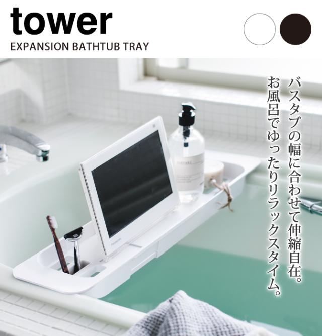 バスタブテーブル お風呂 テーブル タワー tower 山崎実業 バスルーム 浮かせる収納 伸縮バスタブトレー TOWER タワー