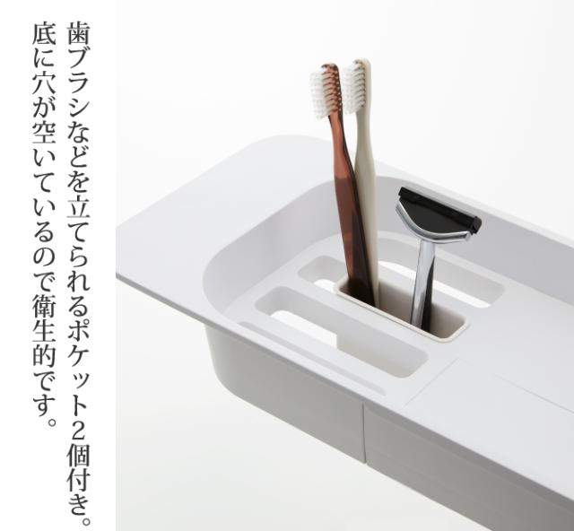 歯ブラシや小物を差し込めるポケット付き。