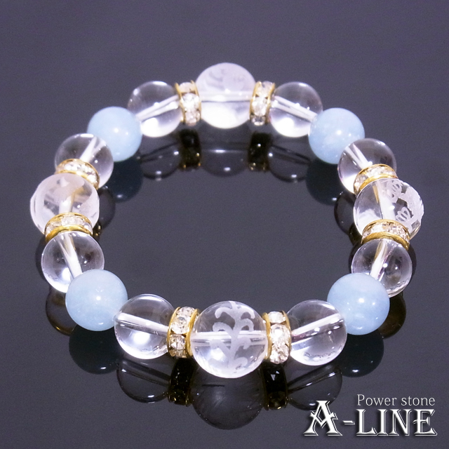パワーストーン ブレスレット 金運UPに 四神素彫り水晶12mm&AAアクアマリン&水晶10mm PW-3274
