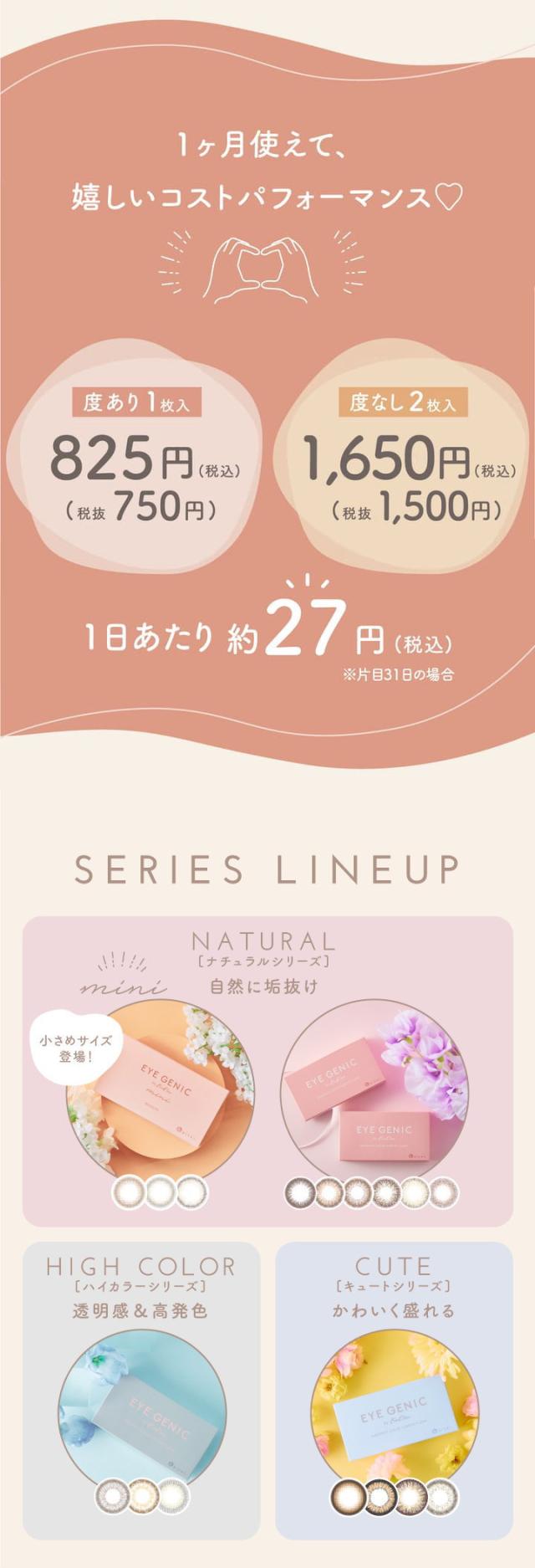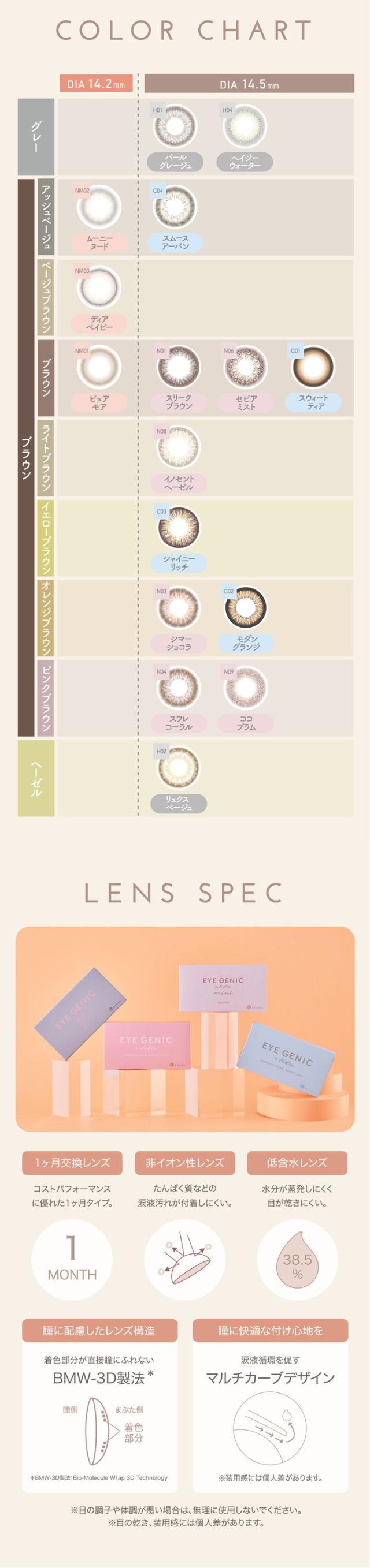 カラコン アイジェニック バイ エバーカラー 1箱2枚 度なし EYEGENIC by Ever Color ナチュラルシリーズ キュートシリーズ ハーフシリーズ マンスリー ワンマンス 1ヶ月交換 カラーコンタクトレンズ big_bc