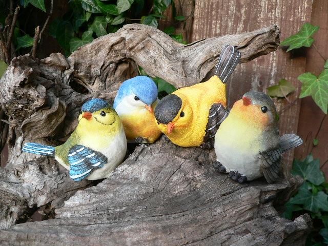 それぞれ表情のカワイイ小鳥達です。 森の雰囲気がでる可愛いいアイテムです。 今にも小鳥たちのさえずりが聞こえそう。 |