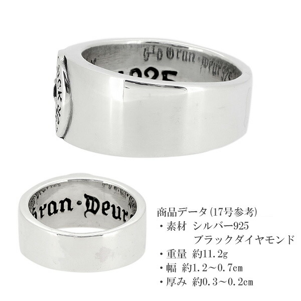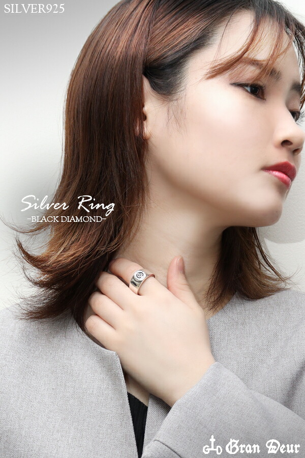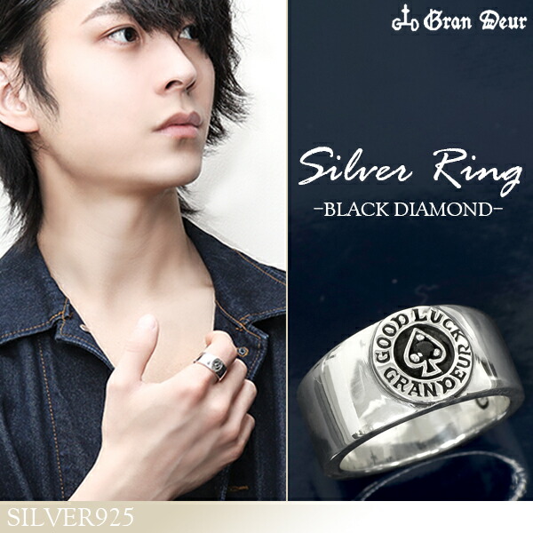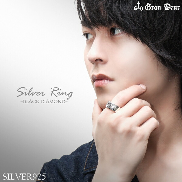 GRAN DEUR グランデュアー ブラックダイヤモンド シルバーリング 17〜21号 指輪 リング ブランドネーム 英字 シンプル クラシック メンズリング