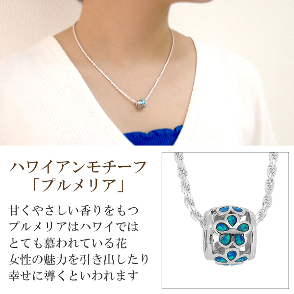 ハワイアンジュエリー プルメリア シンセティックオパール ネックレス