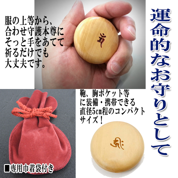本柘植製合わせ守護本尊 (干支 千手観音 不動明王 祈願彫刻 お守り 守護梵字 開運 幸運 八尊仏 携帯 掌サイズ 手のひら 巾着袋付き)