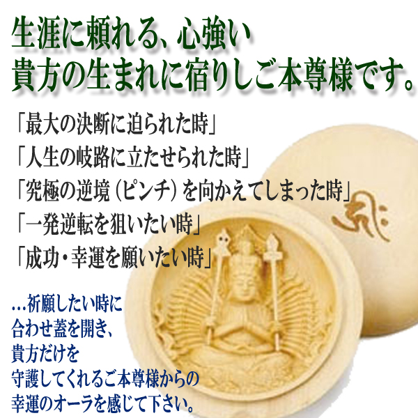 ■本柘植合わせの内部に、貴方の守護神となるご本尊様が工芸技術を用い祈願彫刻されています。