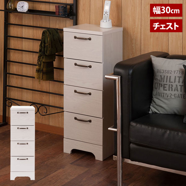 カウンター下チェスト 北欧風収納 引き出し式 幅30cm ホワイト FY-0037-NS