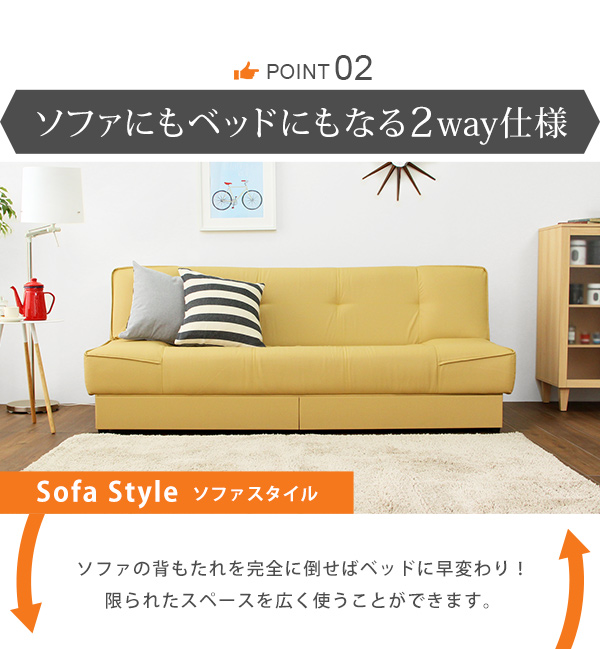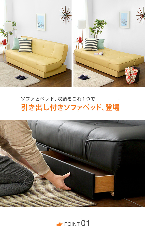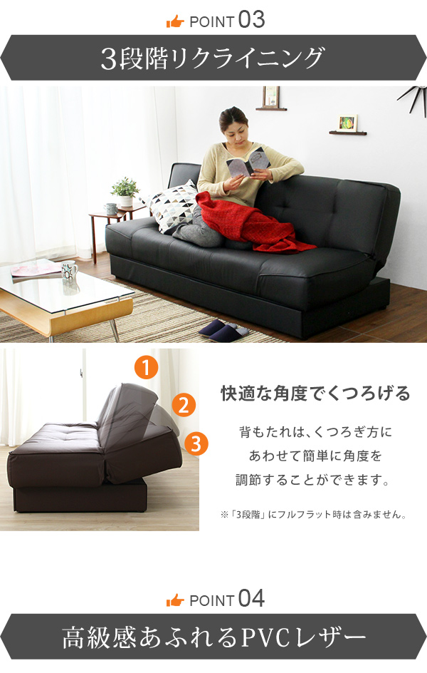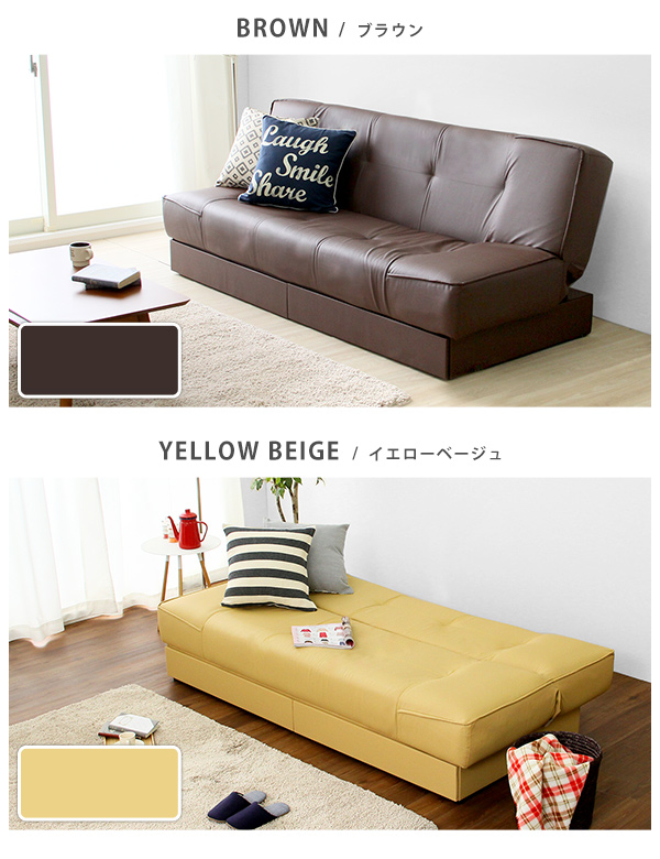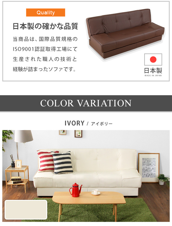 引き出し2杯付き、3段階リクライニングソファベッド(レザー4色)日本製・完成品|Lanaio-ラナイオ-