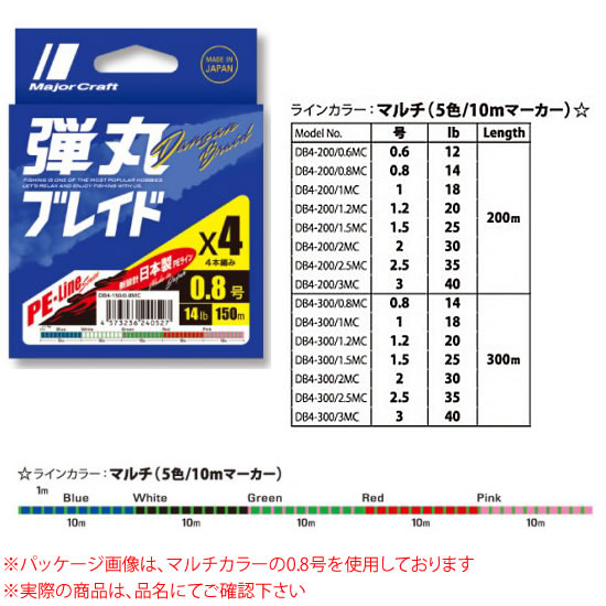 メジャークラフト 弾丸ブレイド 4本編み マルチカラー DB4-200 (PEライン)
