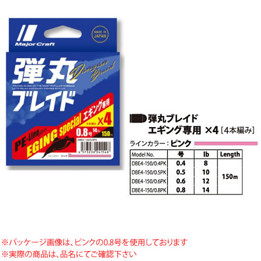 メジャークラフト 弾丸ブレイド 4本編み ピンク DBE4-150 エギング専用 (PEライン)
