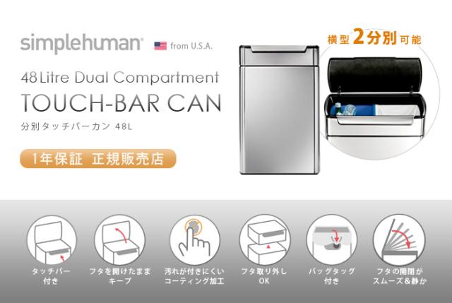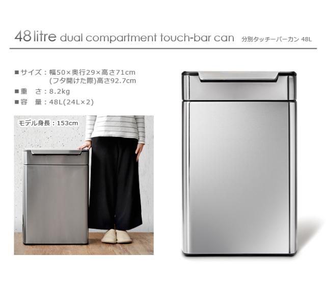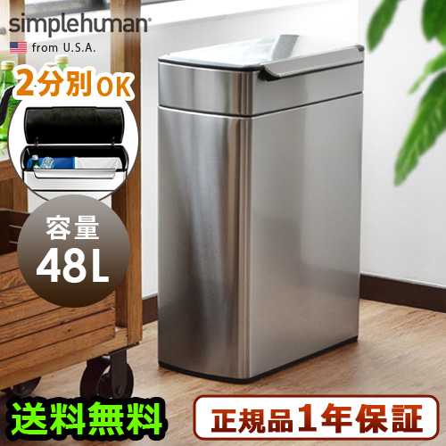 【メーカー直送品★送料無料★正規販売代理店★P2倍】simplehuman 分別タッチバーカン 48L [ゴミ箱 ふた付き スリム おしゃれ]