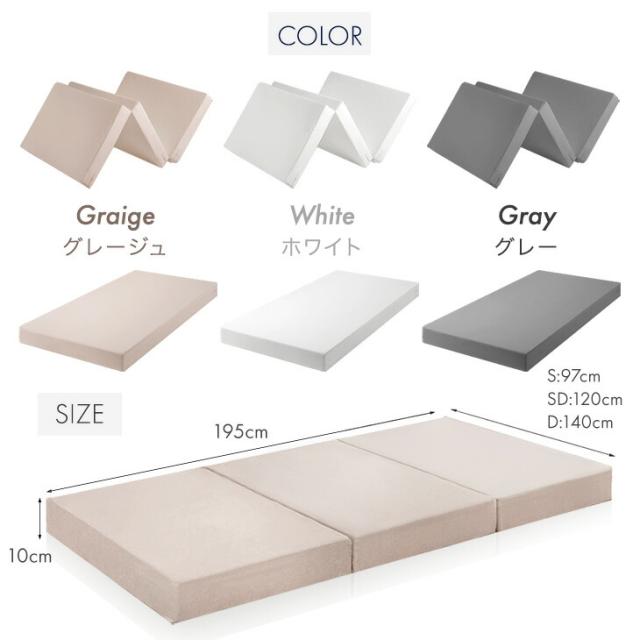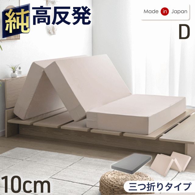 【正午〜P5%還元】 国産 純高反発 マットレス ダブル 10cm 三つ折り 高品質 硬め 150N 日本製 高反発 ウレタンマット ウレタン ベッドマットレス ベッドマット マット 折りたたみ 折り畳み 固め 厚め 厚手 ホワイト グレージュ グレー