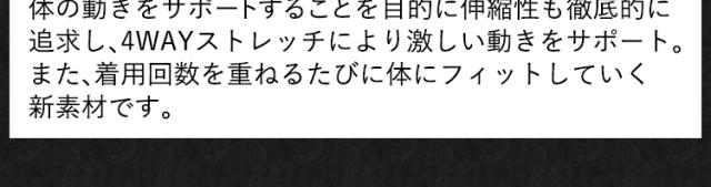 体の動きをサポートすることを目的に伸縮性も徹底的に追求し、4WAYストレッチにより激しい動きをサポート。