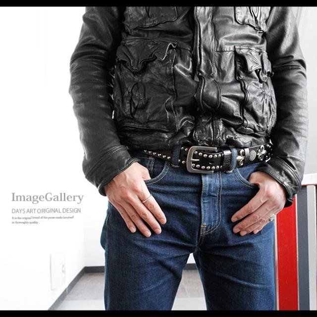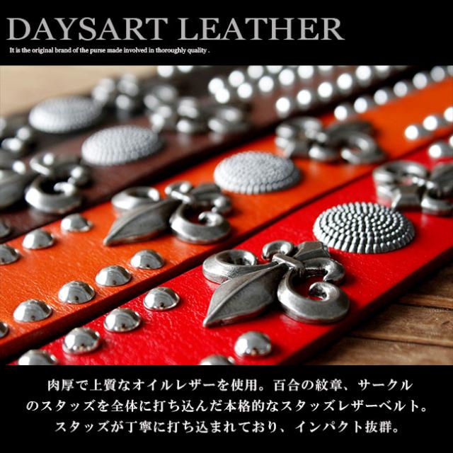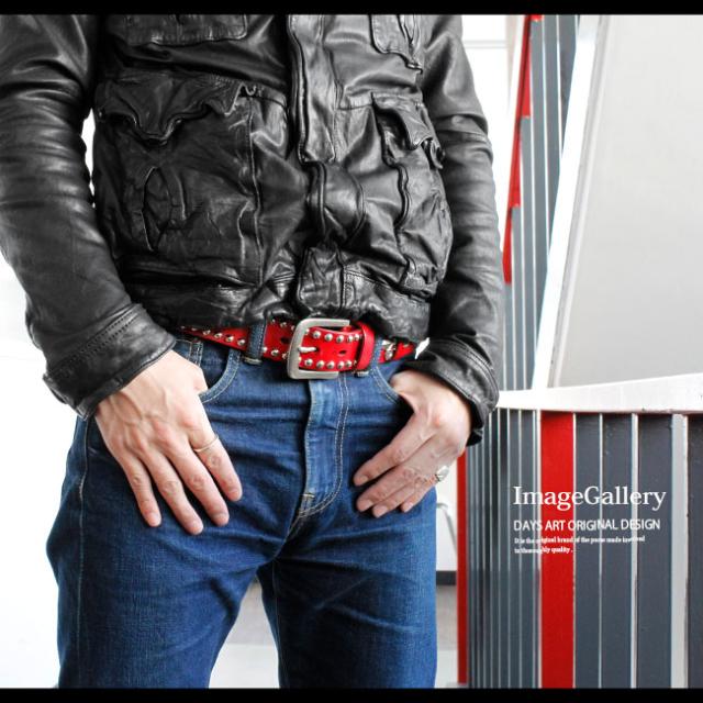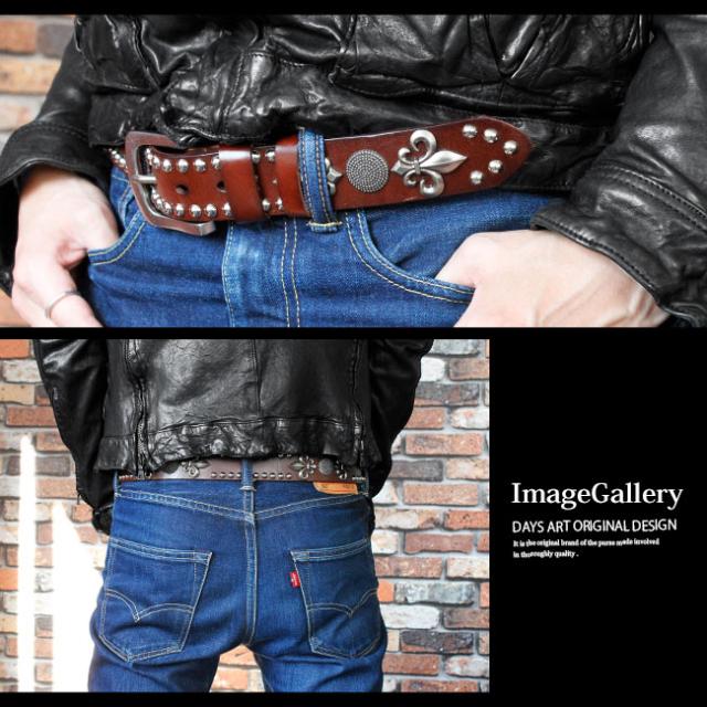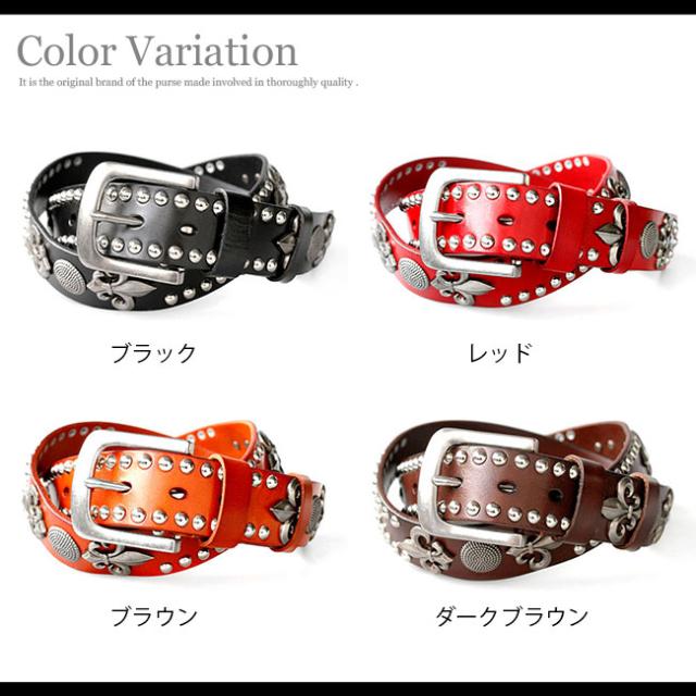 スタッズベルト レザーベルト メンズ 本革 百合の紋章 フレア 大きいサイズ ブラック ブラウン ダークブラウン レッド 【ギフト】 btc010