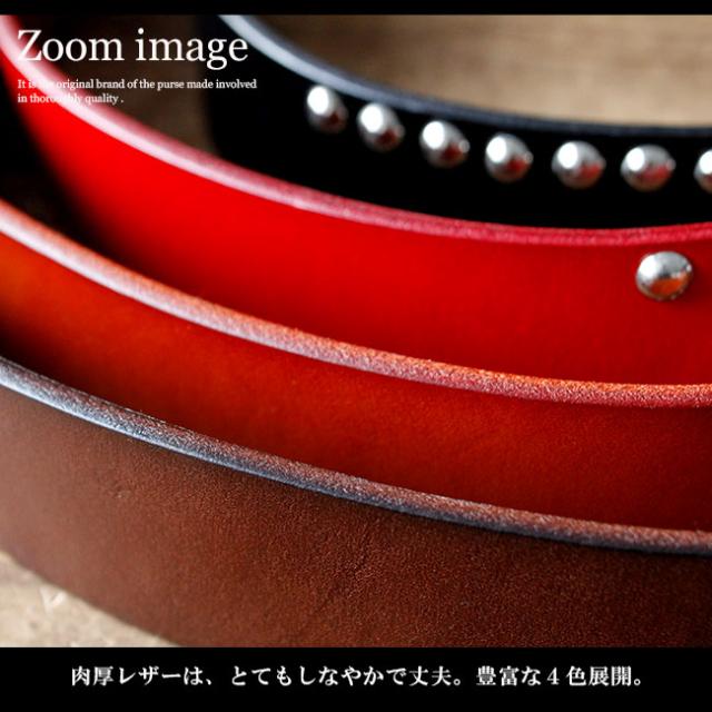 肉厚の牛革に無数のスタッズが打ち込まれたレザーベルトです。百合の紋章などのスタッズをベルト全体に打ち込んでおり、存在感抜群です。長さはアソートで最低110cmをご用意してますので、切ってネジ用の穴を空けることで簡単にサイズ調整することができます。