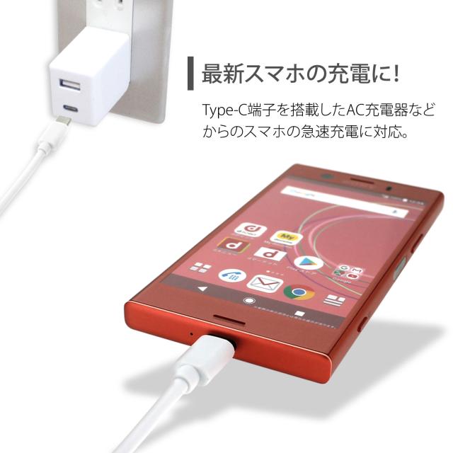 ・Type-C端子を搭載したパソコンやAC充電器などからType-Cコネクタを搭載している機器を接続し、急速充電やデータ転送ができるケーブルです。